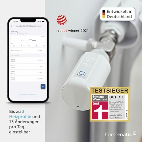 Homematic IP Smart Home Starter Set mit Access Point 2 + 2X Heizkörperthermostat – Evo, digitaler Thermostat Heizung, Heizungsthermostat, Steuerung per App, Alexa & Google Assistant, Energie sparen