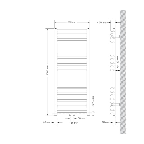 LUXEBATH Ecd Germany Badheizkörper 500 x 1200 mm - Weiß - gebogen mit Mittelanschluss - Design Heizkörper Handtuchwärmer Handtuchtrockner Handtuchheizkörper