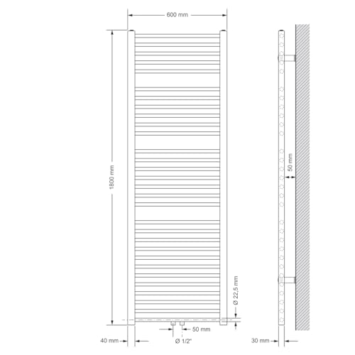 Ecd Germany - Badheizkörper 600 x 1800 mm - Weiß - gerade mit Mittelanschluss - Design Heizkörper Handtuchwärmer Handtuchtrockner Handtuchheizkörper