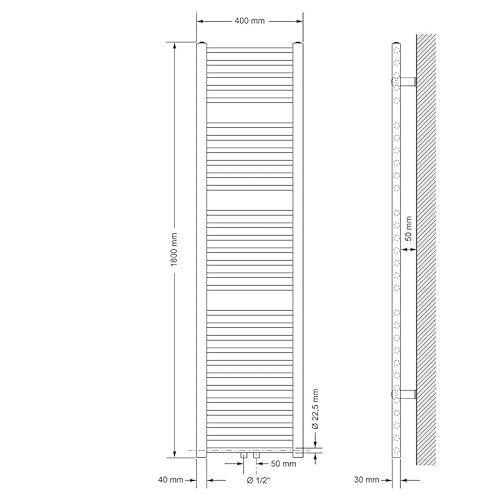 ECD Germany Badheizkörper 400 x 1800 mm - Weiß - gerade mit Mittelanschluss - Design Heizkörper Handtuchwärmer Handtuchtrockner Handtuchheizkörper Handtuchheizung Handtuchheizer Badezimmer Heizung