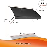 Angerer Klemmmarkise Style mit Handkurbel, Terrasse/Balkon, einfache Montage ohne Bohren, Made in Germany, hochwertiger Stoff, UV-beständig, höhenverstellbar, wasserabweisend, 250 cm Dunkelgrau