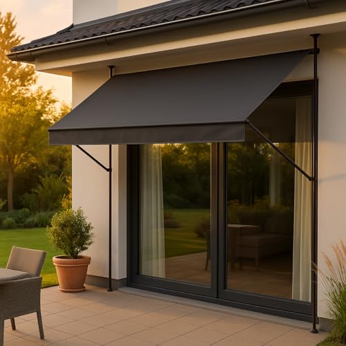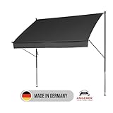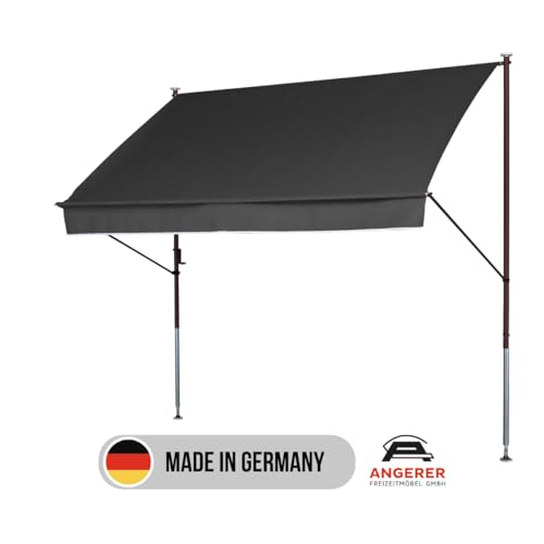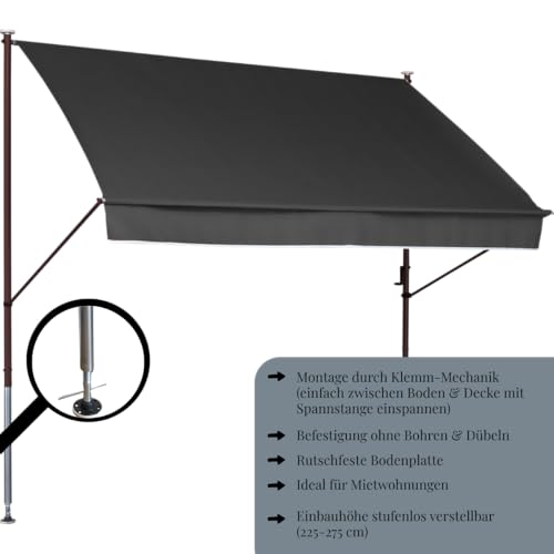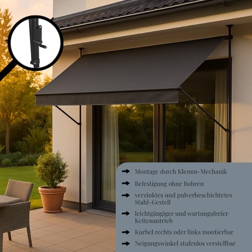 Angerer Klemmmarkise Style mit Handkurbel, Terrasse/Balkon, einfache Montage ohne Bohren, Made in Germany, hochwertiger Stoff, UV-beständig, höhenverstellbar, wasserabweisend, 300 cm Dunkelgrau