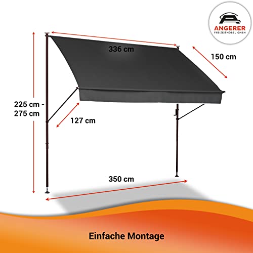 Angerer Klemmmarkise Style mit Handkurbel, Terrasse/Balkon, einfache Montage ohne Bohren, Made in Germany, hochwertiger Stoff, UV-beständig, höhenverstellbar, wasserabweisend, 350 cm Dunkelgrau
