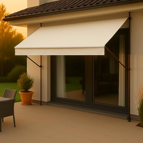Angerer Klemmmarkise Style mit Handkurbel, Terrasse/Balkon, einfache Montage ohne Bohren, Made in Germany, hochwertiger Stoff, UV-beständig, höhenverstellbar, wasserabweisend, 400 cm Beige