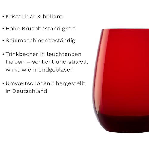 Stölzle Lausitz Wassergläser Elements Rot 6er-Set 465 ml – Allroundgläser für Wasser, Saft & Cocktails – Hochwertige Trinkgläser aus bleifreiem Kristallglas – Spülmaschinengeeignet & stoßfest