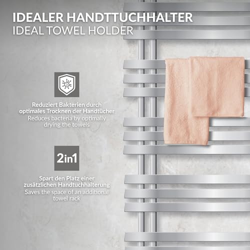 ECD Germany Iron EM Design Badheizkörper - 500 x 1200 mm - Chrom - Designheizkörper Paneelheizkörper Heizkörper Handtuchwärmer Handtuchtrockner Heizung Radiator
