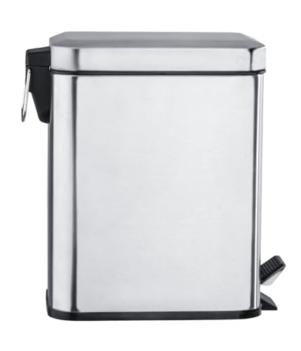 WENKO Treteimer Square Matt Edelstahl - Kosmetikeimer, Mülleimer Fassungsvermögen: 5 l, Edelstahl rostfrei, 14 x 29.5 x 28 cm, Satiniert, 29.5 x 28 x 14 cm