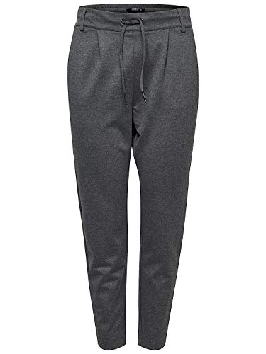 Jogger Pants ONLY ONLPOPTRASH LIFE EASY COL PANT PNT NOOS, Damen, Gr. L (40), Länge 32, grau (dunkelgrau melange), Milano Rib, Obermaterial: 63% Viskose, 32% Nylon, 5% Elasthan, unifarben, regular fit lang, Hosen, mit elastischem Bund und Kordelzug