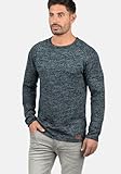 Strickpullover BLEND BHDan, Herren, Gr. 3XL, navy, Feinstrick, 50% Baumwolle, 50% Polyacryl, meliert, regular fit, Rundhals, Raglanärmel, Pullover, Stilvoller Strickpullover mit aufgerollten Säumen