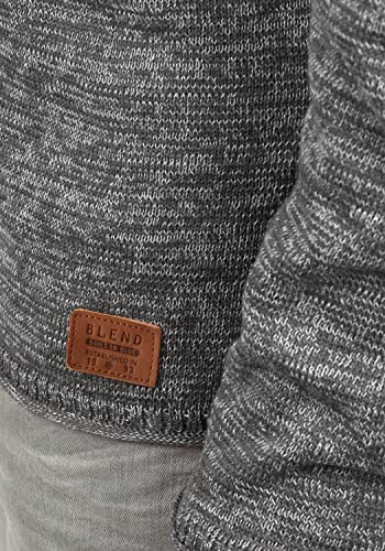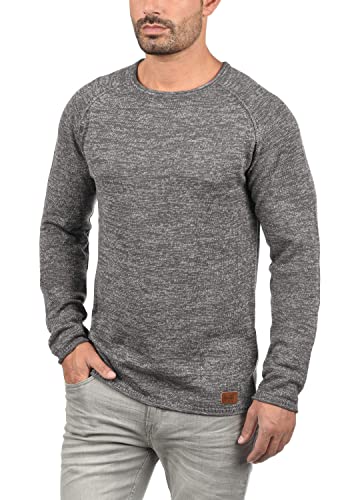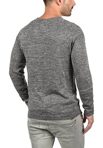 Blend BHDan Herren Strickpullover Feinstrick Pullover mit Rundhalsausschnitt Baumwollmischung Label-Patch Regular fit, Größe:XL, Farbe:Pewter Mix (70817)
