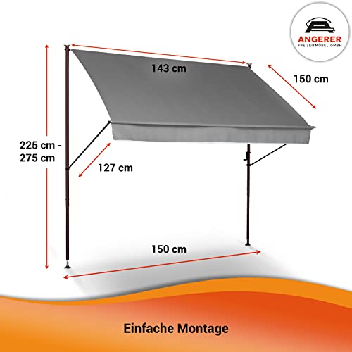 Angerer Klemmmarkise Style mit Handkurbel, Terrasse/Balkon, einfache Montage ohne Bohren, Made in Germany, hochwertiger Stoff, UV-beständig, höhenverstellbar, wasserabweisend, 150 cm Terra