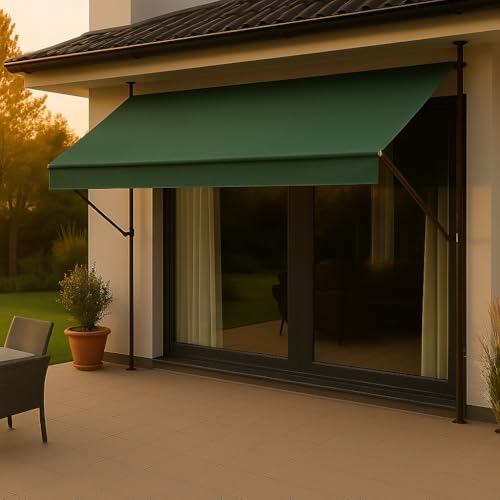 Angerer Klemmmarkise Style mit Handkurbel, Terrasse/Balkon, einfache Montage ohne Bohren, Made in Germany, hochwertiger Stoff, UV-beständig, höhenverstellbar, wasserabweisend, 350 cm Grün