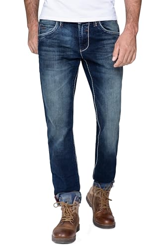 Camp David NI:CO Herren Jeans Regular Fit Stretch | gerades Bein, mittlere Leibhöhe, Five-Pocket & Zip-Fly, helle Kontrastnähte mit 3D-Knitter, markanter Dark-Used-Look und komfortabler Sitz 38 34