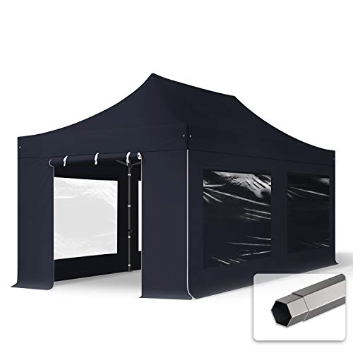 INTENT24 3x6 m Faltpavillon, PREMIUM Stahl 40mm, Seitenteile mit Panoramafenstern, creme