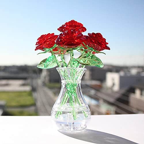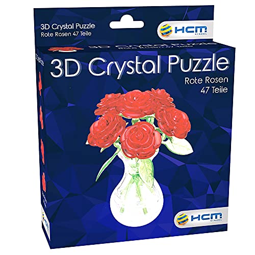 Crystal Puzzle | 3D Rote Rosen in der Vase Rot | Transparentes Design | 47 Teile | Bausatz für Kinder und Erwachsene | HCM Kinzel