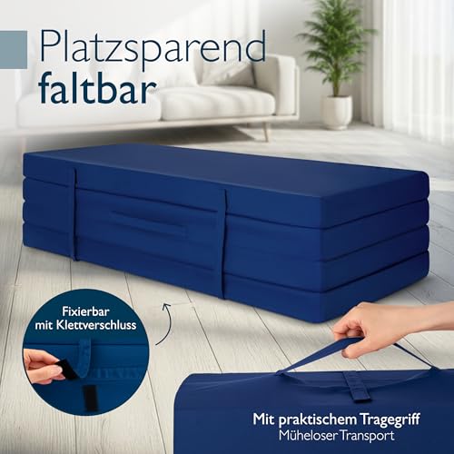 Beautissu Klappmatratze Gästebett klappbar 120x195 cm Faltmatratze Gästematratze faltbar Reisematratze Klappbett Gäste Matratze – Campix Camping Matratze Tragegriff Bodenmatratze waschbar Dunkelblau