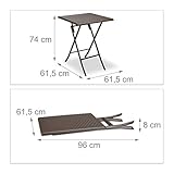 Relaxdays Gartentisch klappbar BASTIAN, quadratisch H x B x T: 74 x 61,5 x 61,5 cm, Metall, Kunststoff, Rattan-Optik, braun