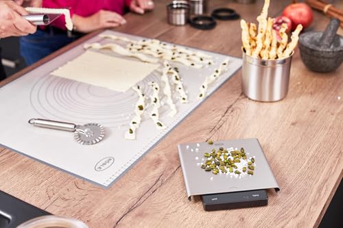 RÖSLE Back- und Arbeitsmatte Silikon, Hochwertige Teigmatte als Unterlage mit Maßen, rutschfest, hitzebeständig und wiederverwendbar, Silikon, spülmaschinengeeignet, Weiß