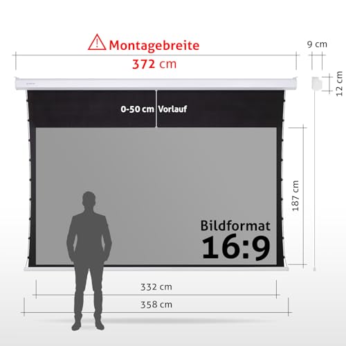 ESMART Professional TATENSO Tageslicht-Tension-Leinwand GRAU 372 cm Bild 332 x 187 cm (150") 16:9 | Programmierbare Fernbedienung | Heimkino elektrische Beamer Projektionsleinwand