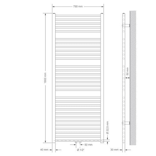 ECD Germany Badheizkörper 750 x 1800 mm - Weiß - gerade mit Mittelanschluss - Design Heizkörper Handtuchwärmer Handtuchtrockner Handtuchheizkörper Handtuchheizung Handtuchheizer Badezimmer Heizung