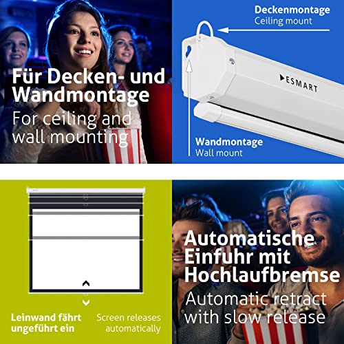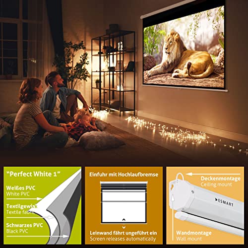 ESMART Economy EXR Rollo-Leinwand 155 cm Bild 140 x 105 cm (69") | Format 4:3 | Heimkino Beamer Projektionsleinwand Rollo Leinwand LCD LED