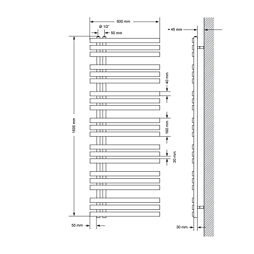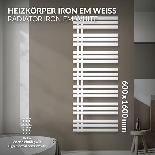 Ecd Germany - Iron em Design Badheizkörper - 600 x 1600 mm - Weiß - Designheizkörper Paneelheizkörper Heizkörper Handtuchwärmer Handtuchtrockner