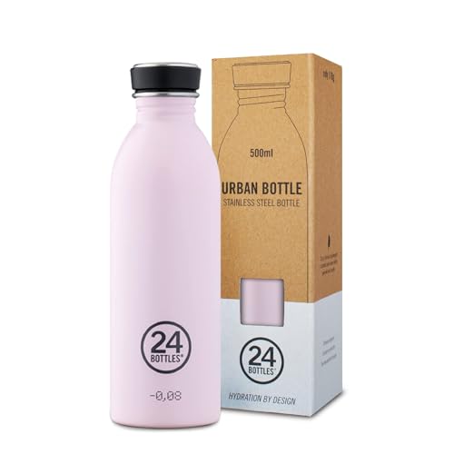 24Bottles Urban - Trinkflasche 500 ml, Wasserflasche 100% Versiegeltem Deckel, Umweltfreundliche Trinkflasche Edelstahl, Trinkflasche Sport Ultraleichte (Nicht-Thermische), Italian Design, Candy Pink