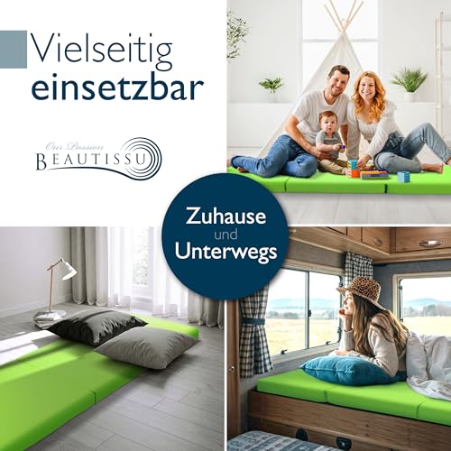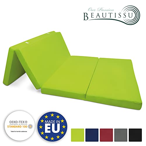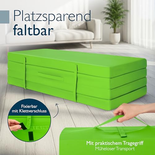 Beautissu Klappmatratze Gästebett klappbar 120x195 cm Faltmatratze Gästematratze faltbar Reisematratze Klappbett Gäste Matratze – Campix Camping Matratze Tragegriff Bodenmatratze waschbar Grün