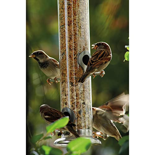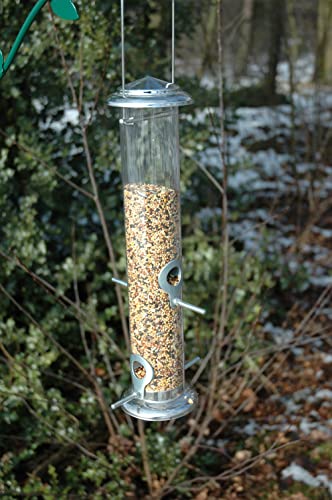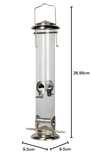 dobar® 11520 Große Vogelfuttersäule mit Acrylglasröhre - Futterstation für Wildvögel aus Stahl - Vogelfutterspender zum Hängen - Futter für Garten/Terrasse/Balkon - Ø 9,5 x 39 cm - Silber