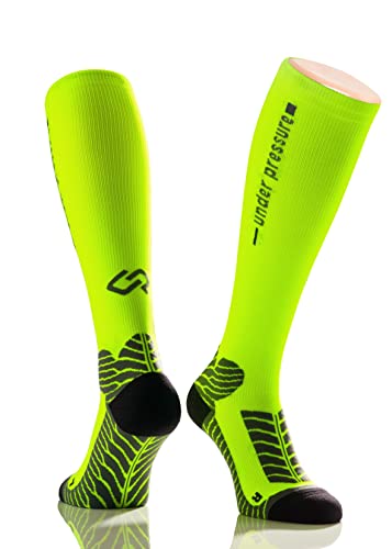 Sport Kompressionsstrumpf under pressure RUNATTACK (Kompression: 18-21mmHg) (neon gelb, Gr. 35-38 (Wadenumfang: 28-38cm))