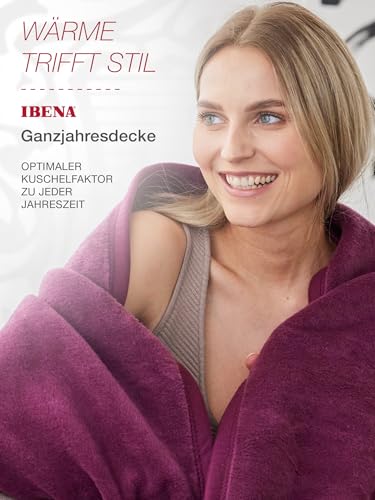 Ibena Porto XXL Decke 180x220 cm – Baumwollmischung weich, warm & waschbar, Tagesdecke lila einfarbig