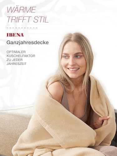 Wohndecke IBENA Luxus, beige, B:220cm L:240cm, Baumwolle, Kunstfaser, Wohndecken, Wohndecke, verschiedene Größen, unifarbenes Design, Kuscheldecke, Made in Europe