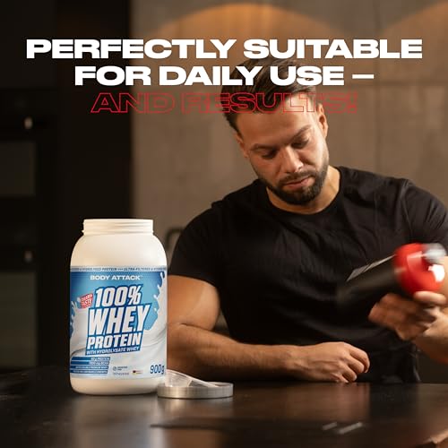 Body Attack 100% Whey Protein - Strawberry, 900 g - Made in Germany - extra cremiges Eiweißpulver mit Hydrolysat und BCAA´s, unterstützt Muskelaufbau und Diäten, für alle Sportler & Athleten