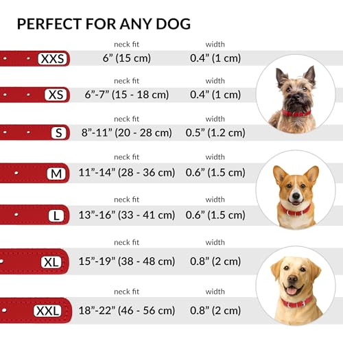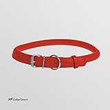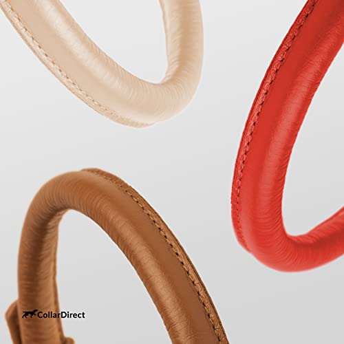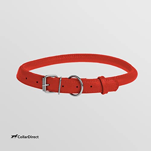 CollarDirect Hundehalsband aus gerolltem Leder, weich gepolstertes rundes Welpenhalsband, handgefertigtes Halsband aus echtem Leder für kleine große Katzenhalsbänder(8-11 Zoll, rot strukturiert)