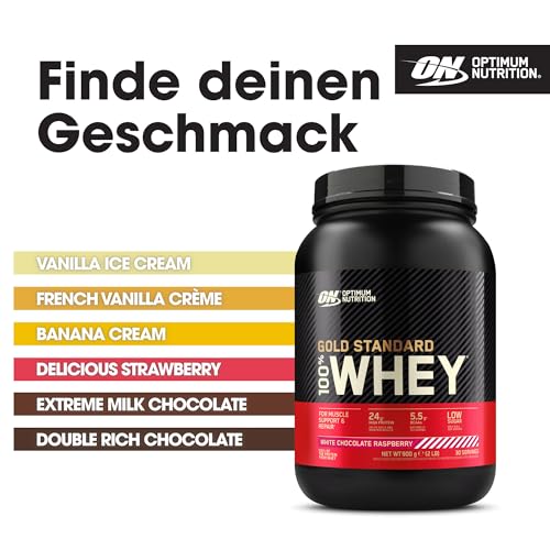 Optimum Nutrition Gold Standard 100% Whey, Proteinpulver, Geschmack Weiße Chocolate Raspberry, 900g, 30 Portionen