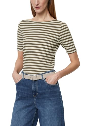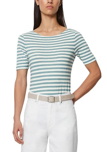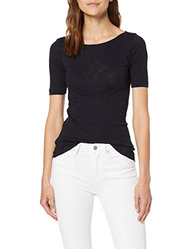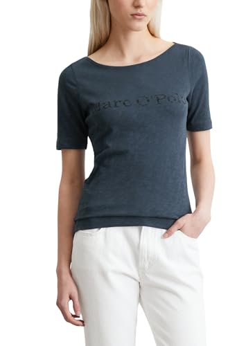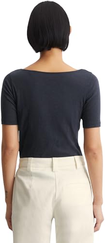 Marc O'Polo Damen T-Shirt aus Bio-Baumwolle mit U-Boot-Ausschnitt, Blau (Manic Midnight), XS