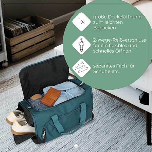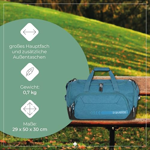 Reisetasche TRAVELITE KICK OFF, verschiedene Größen und Farben, Damen, Gr. B/H/T: 50cm x 29cm x 30cm, blau (petrol), Polyester, unifarben, Taschen Reisetasche, Reisegepäck Sporttasche Freizeittasche mit Aufsteckfunktion
