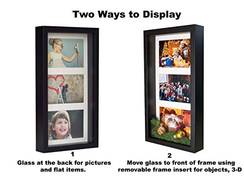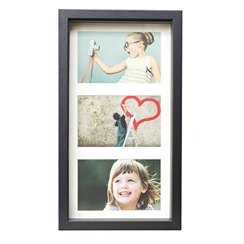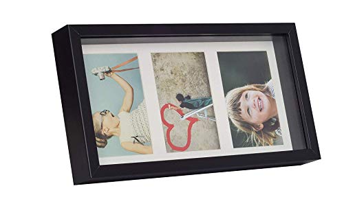 BD ART 18x35 cm 3D Box Mehrfach Bilderrahmen, Bildergalerie, Fotogalerie mit Passepartout und 3 Foto-Ausschnitten für 3 Fotos 10x15 cm, Schwarz Rechteckiger Objektrahmen tiefer für objekte 3 cm