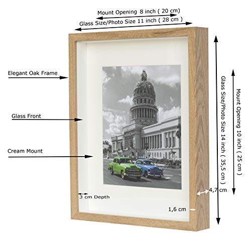 BD ART 28x35 cm Box 3D Tief Objektrahmen Eiche Bilderrahmen mit Passepartout 20x25 cm Rechteckiger zum befüllen tiefer für objekte foto, suvenirs 3 cm für Wandbehang