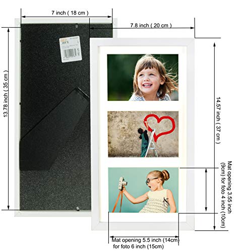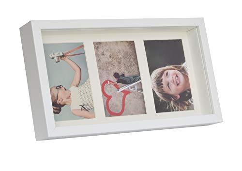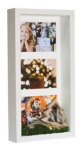 BD ART 18x35 cm 3D Box Tief Mehrfach Bilderrahmen für 3 Fotos 10x15 cm Weiß Bildergalerie Fotogalerie mit Passepartout und 3 Foto-Ausschnitten Rechteckiger Objektrahmen tiefer für objekte 3 cm