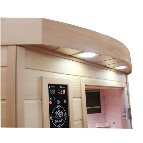 Dewello® Infrarotkabine Infrarotsauna LAKEFIELD 120cm x 120cm für 1-2 Personen aus Hemlock Holz mit Vollspektrumstrahler, LED-Farblicht, Bluetooth, FM,MP3,USB