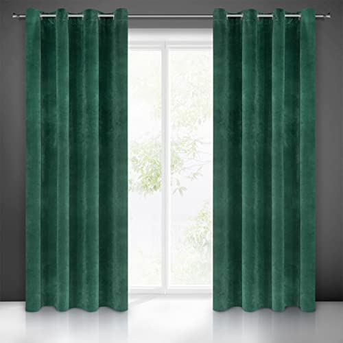 Eurofirany Villa Samtvorhang Vorhänge Ösen Kräuselband Blickdicht Kissenbezüge Palast Samt Velours (Villa Dunkelgrün, 140 x 250 cm Ösenvorhang)
