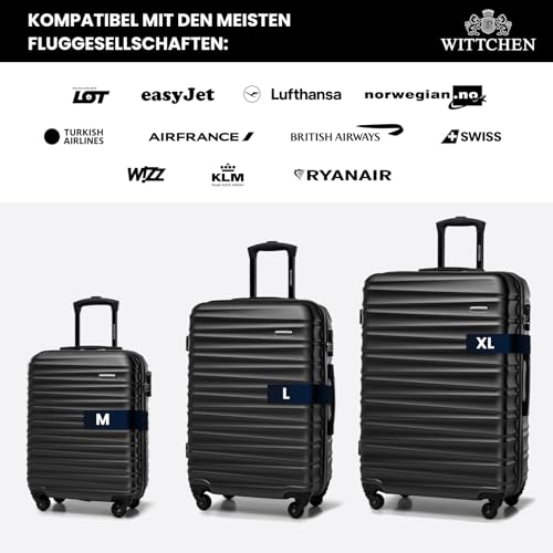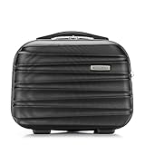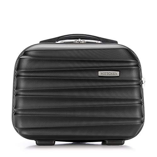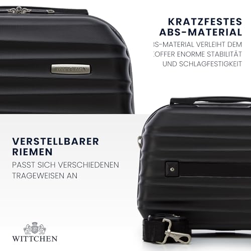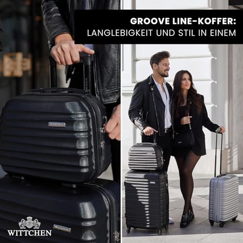 WITTCHEN Kosmetikkoffer Reisekoffer Handgepäck Kabinengepäck Rollkoffer Hartschale aus ABS Reisegepäck Kulturbeutel Kosmetiktasche Damen Groove Line schwarz Lufthansa/Eurowings/Condor