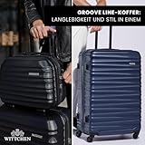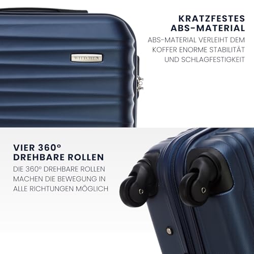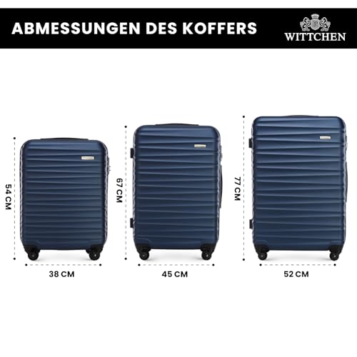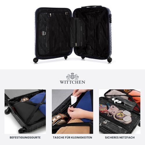 WITTCHEN Reisekoffer 3er Koffer-Set Rollkoffer Trolley Handgepäck Reisekofferset Gepäckset Hartschale aus ABS 4 Spinner-Rollen Zahlenschloss Groove Line Marineblau Lufthansa/Eurowings/Ryanair/Condor