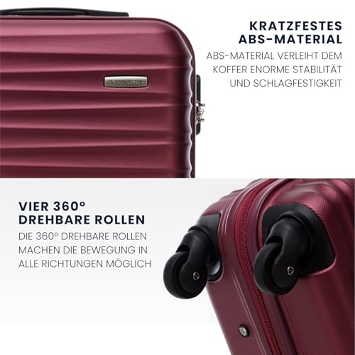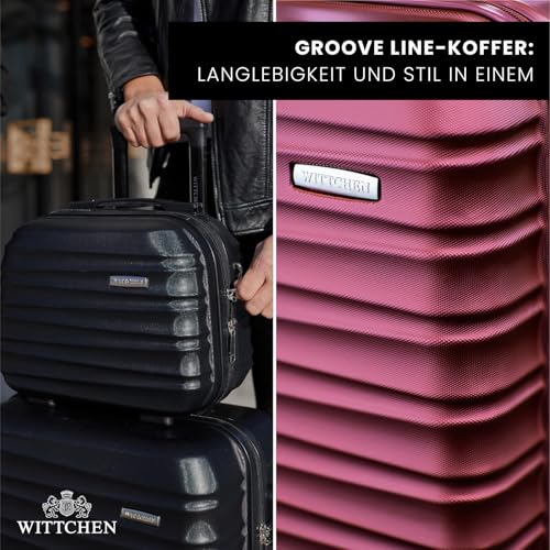 WITTCHEN Reisekoffer 4er Koffer-Set Rollkoffer Trolley Handgepäck Gepäck Reisekoffer Set Hartschale aus ABS 4 Spinner-Rollen Zahlenschloss Groove Line kastanienbraun Lufthansa/Eurowings/Ryanair/Condor