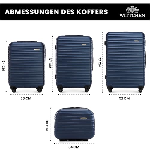 WITTCHEN Reisekoffer 4er Koffer-Set Rollkoffer Trolley Handgepäck Gepäck Reisekoffer Set Hartschale aus ABS 4 Spinner-Rollen Zahlenschloss Groove Line Marineblau Lufthansa/Eurowings/Ryanair/Condor