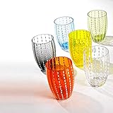 Zafferano Perle Glasbecher - Handgemachtes Buntglas, cl 32 h 109mm d 71mm - Set 6 Stück - (Blaugrau)