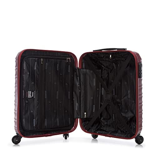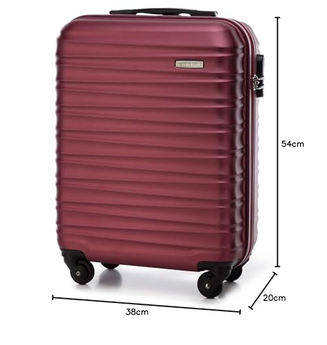 WITTCHEN Reisekoffer Handgepäck Kabinengepäck Rollkoffer Kabinenkoffer Kleiner Koffer Trolley Hartschale aus ABS 4 Spinner-Rollen Zahlenschloss Groove Line Größe S kastanienbraun Lufthansa/Eurowings