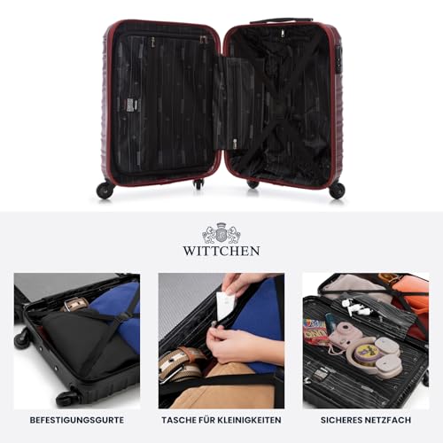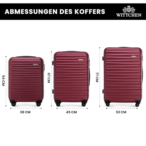 WITTCHEN Reisekoffer 3er Koffer-Set Rollkoffer Trolley Handgepäck Reisekofferset Gepäckset Hartschale ABS 4 Spinner-Rollen Zahlenschloss Groove Line kastanienbraun Lufthansa/Eurowings/Ryanair/Condor