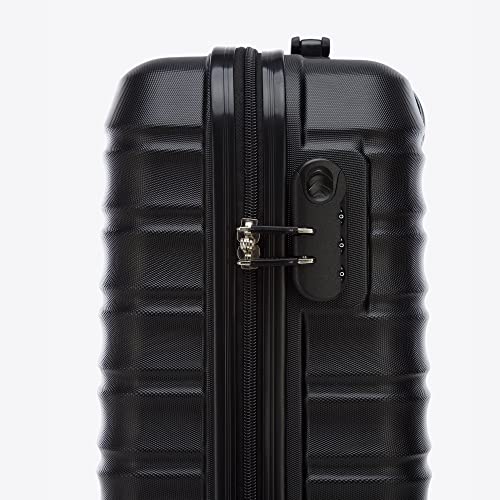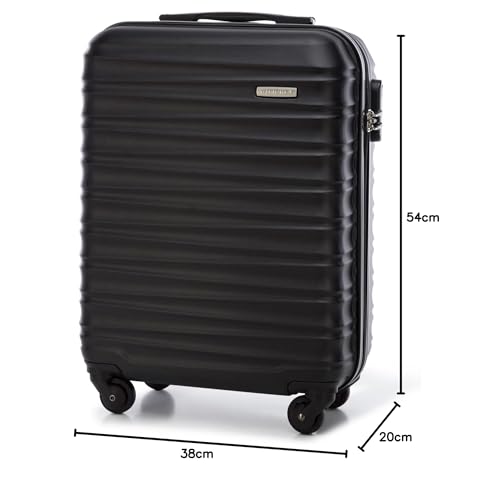 WITTCHEN Reisekoffer Handgepäck Kabinengepäck Rollkoffer Hartschale aus ABS mit 4 Spinner-Rollen Zahlenschloss Teleskopgriff Groove Line Größe S Schwarz